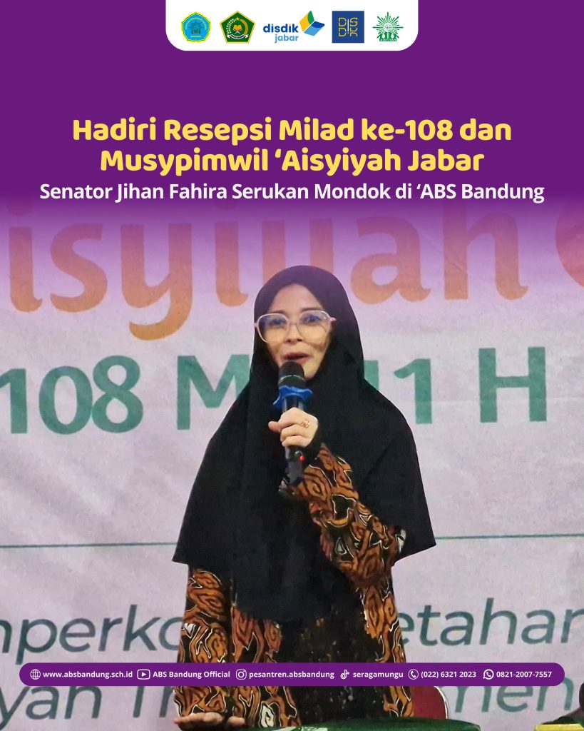 Kabupaten Bandung — Anggota Dewan Perwakilan Daerah Republik Indonesia (DPD RI) Dapil Jawa Barat, Jihan Fahira menghadiri Resepsi Milad ke-108 dan Musyawarah Pimpinan Wilayah (Musypimwil) ‘Aisyiyah Jawa Barat pada Jumat (27/6) di Kompleks Pendidikan ‘Aisyiyah Boarding School Bandung. Dalam acara tersebut, Jihan Fahira memberikan