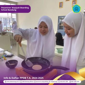 Bertempat di Laboratorium IPA ‘ABS Bandung, sejumlah santriwati yang terdiri dari kelas IX A dan IX B SMP ‘ABS Bandung mengikuti kegiatan masak-memasak sesuai langkah-langkah yang telah ditulis secara berkelompok.